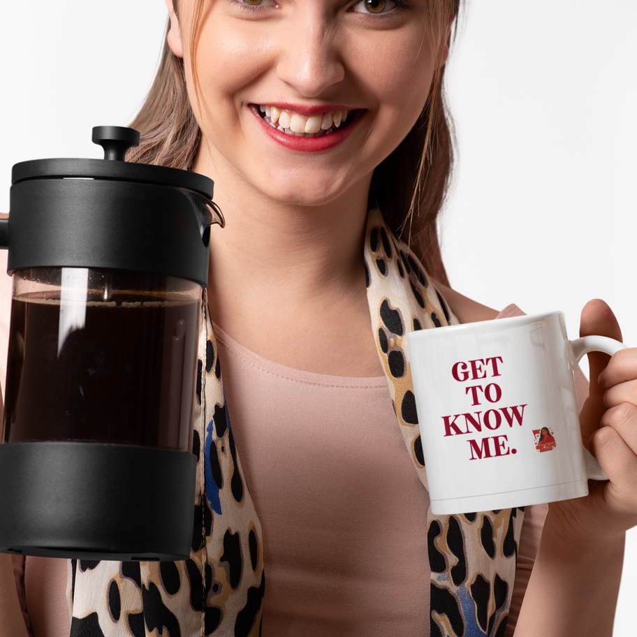 Designed for women (and men) who value intention, depth, and real connection, the GET TO KNOW ME.™ mug sets the tone before the first sip. Whether it’s morning coffee, afternoon tea, or late-night reflection, this mug speaks for you — without saying too much.